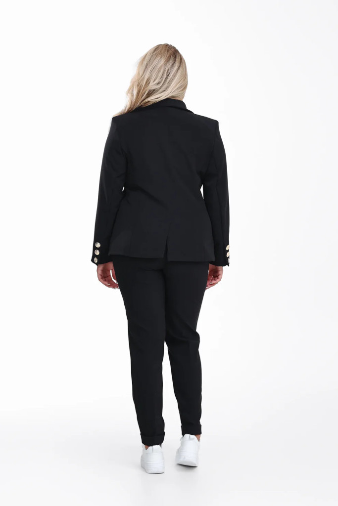 Magas dereka kiemeli a nőies vonalakat, a hajtások és részletek pedig finoman emelik ki a profizmust sugárzó megjelenést.