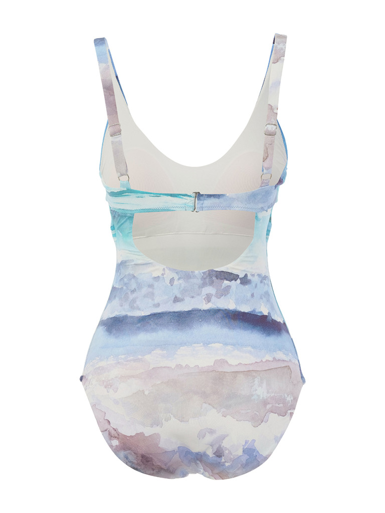 Fedezd fel a viselhető művészet szépségét a Dolcezza bélelt fürdőruhájában, amelyet Yuri Kraf "Tengeri tájkép" című műalkotása díszít.