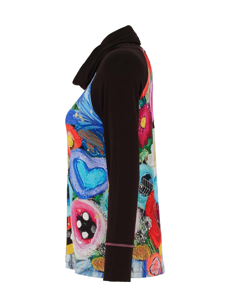 Fekete nyakkivágás és ujjak