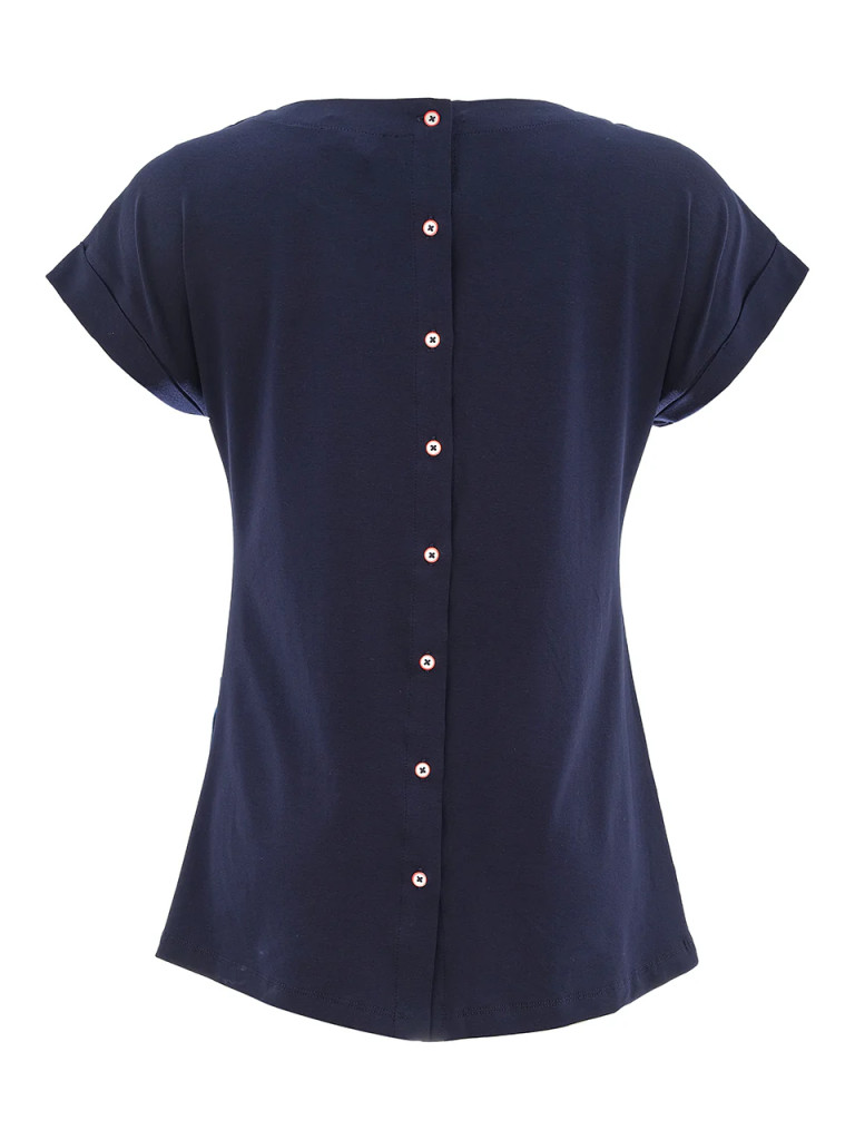 Rövid ujjú, sötétkék, visszahajtott mandzsettával