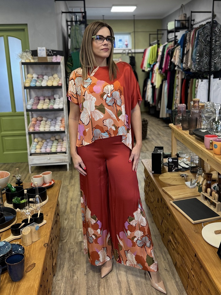 Könnyű, mintás anyagból, viszkóz, műselyem és elasztán keverékéből.